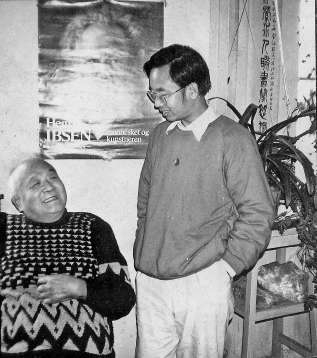 蕭乾與作者(李金華攝于1990年1月,北京)