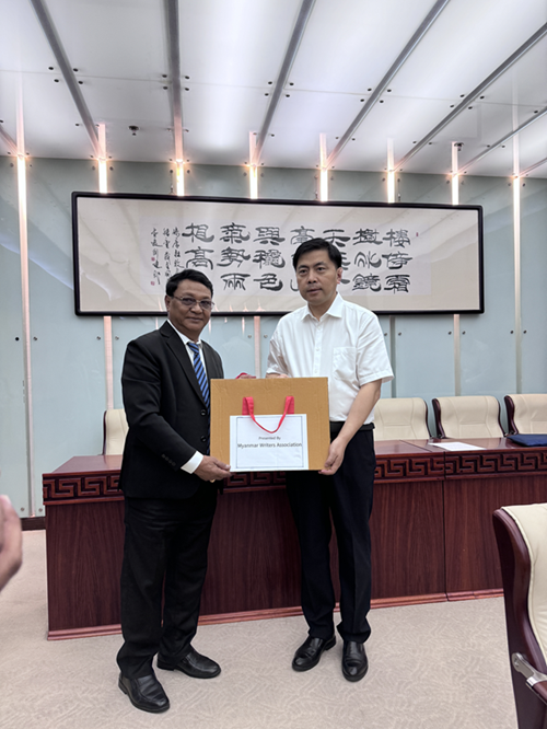 胡邦勝代表中國作協(xié)向緬甸作協(xié)贈送禮物