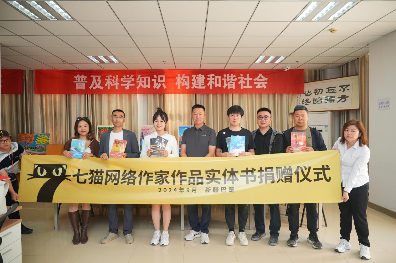 9月12日,七貓網(wǎng)絡(luò)作家一行抵達(dá)喀什地區(qū)的“東大門”,古“絲綢之路”的重要驛站——巴楚,向巴楚縣圖書館捐贈(zèng)圖書120余冊,包括現(xiàn)實(shí)題材作品《騰格里的記憶》《大國盾構(gòu)夢》《智能覺醒》《萬里山河一日還》《蒼穹之盾》《尖鋒》等?!厄v格里的記憶》作者白馬出涼州、《大國盾構(gòu)夢》《智能覺醒》作者銀月光華、《蒼穹之盾》作者伴虎小書童、《尖鋒》作者顧天璽參加活動(dòng)捐贈(zèng)圖書。“很高興我的作品能出現(xiàn)在巴楚圖書館,《尖鋒》是一本公安題材小說,展現(xiàn)了黨員輔警在維護(hù)社會(huì)治安、打擊犯罪過程中的英勇事跡和復(fù)雜心理。能夠?yàn)樾陆淖x者們帶來一些精神營養(yǎng),為文化援疆作出貢獻(xiàn),我感到十分有意義?!鳖櫶飙t說到。