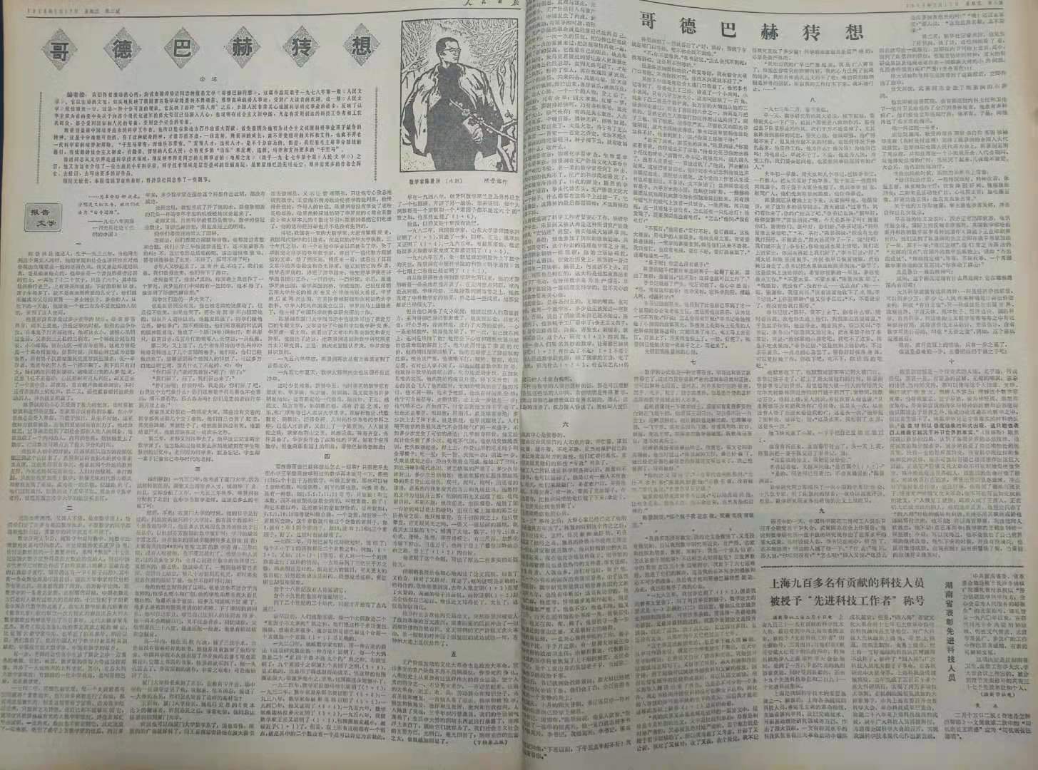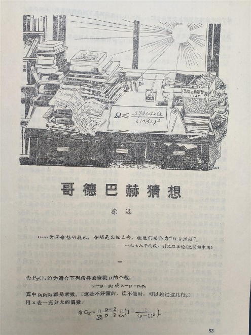 1978年1月,《人民文學(xué)》雜志在新年第一期頭條發(fā)表了老作家徐遲的新作:報(bào)告文學(xué)《哥德巴赫猜想》。該文講述了數(shù)學(xué)家陳景潤(rùn)不平凡的人生經(jīng)歷(他的童年、求學(xué)生涯,以及被華羅庚賞識(shí),進(jìn)入中國(guó)科學(xué)院數(shù)學(xué)研究所的過程。),“哥德巴赫猜想”的內(nèi)容和發(fā)展歷史,以及陳景潤(rùn)是如何在“文化大革命”期間,在艱苦環(huán)境下通過頑強(qiáng)努力取得了(1+2)的證明過程(文革中,陳景潤(rùn)受到各種誹謗、遭遇了許多困難和他的生活十分艱辛,以致身患重病,后來(lái)在毛主席的指示下住院治療。)。