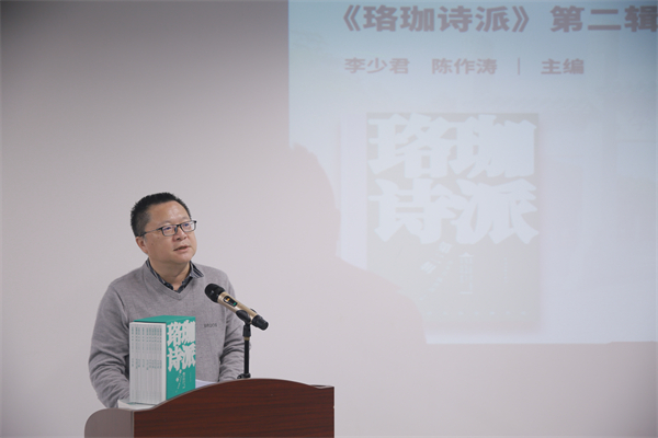 李少君在《珞珈詩派》第二輯首發(fā)式上。李少君,詩人、作家,出生于湖南湘鄉(xiāng),畢業(yè)于武漢大學(xué)新聞系,曾任《天涯》雜志主編,現(xiàn)任《詩刊》雜志社主編