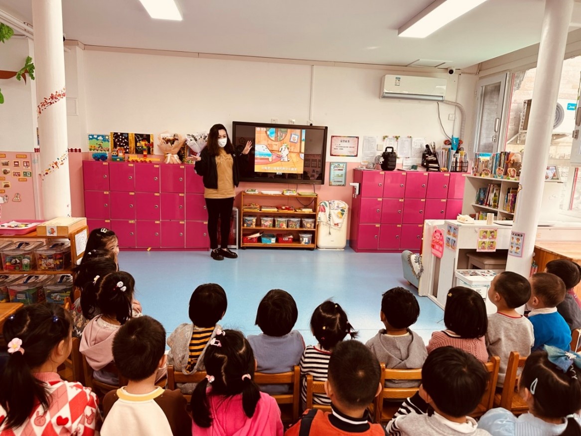 布買熱木汗·吾不力卡司木在中央民族大學幼兒園給孩子們講故事