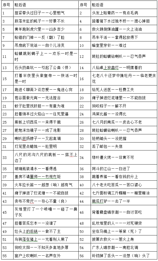 表一 《客鄉(xiāng)風(fēng)月》歇后語(部分)