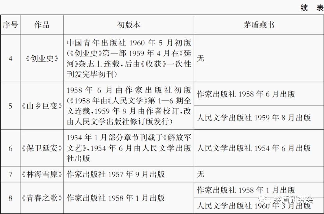 從藏書(shū)情況可以看出,茅盾對(duì)于作品的收藏情況,既有單本收藏,如《紅巖》《紅日》,也有副本的收藏,如《山鄉(xiāng)巨變》《青春之歌》,既有初版本,如《紅巖》《保衛(wèi)延安》,也有非初版本的收藏,如《紅旗譜》《山鄉(xiāng)巨變》《青春之歌》。