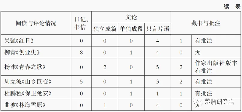 從表2中可見(jiàn),柳青《創(chuàng)業(yè)史》、周立波《山鄉(xiāng)巨變》在日記中有明確記錄,其中在致朱棠(1973年12月11日)中“你需要的《創(chuàng)業(yè)史》及《母親》找不到,想來(lái)你記錯(cuò)或者被人拿走了。我的孫兒的同學(xué)常來(lái)這間書(shū)房里找書(shū),有時(shí)借了去也不說(shuō)一聲“,更是證實(shí)了茅盾藏書(shū)中《創(chuàng)業(yè)史》的一種可能去向。