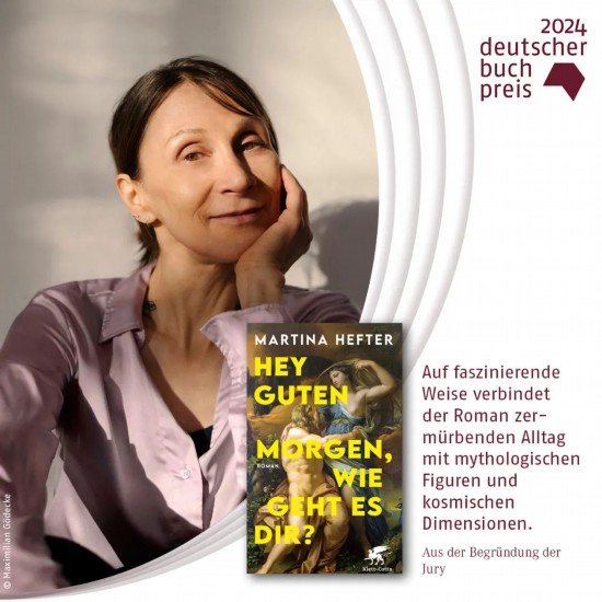2024年10月14日,法蘭克福書展啟動(dòng)儀式在舊市政廳皇家大廳舉行。儀式上揭曉了2024年德國圖書獎(jiǎng)得主,瑪?shù)倌?赫夫特(Martina Hefter)憑借小說《嘿,早上好,你好嗎?》(Hey guten Morgen, wie geht es dir? 克萊特-柯塔出版社)得以獲此殊榮,該作者早前還曾獲锝德國文學(xué)基金會(huì)2024年大獎(jiǎng)。