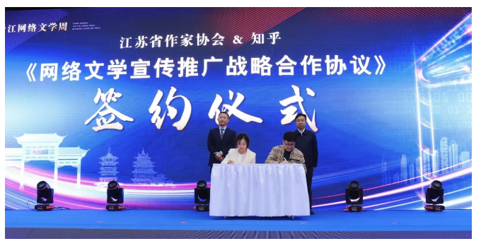 10 月22日,由江蘇省作家協(xié)會(huì)主辦的第四屆揚(yáng)子江網(wǎng)絡(luò)文學(xué)周在南京開幕。開幕式上,知乎與江蘇作協(xié)正式簽訂戰(zhàn)略合作協(xié)議,圍繞網(wǎng)絡(luò)文學(xué)作家、作品與知乎社區(qū)討論、創(chuàng)作,展開一系列合作,共同探索網(wǎng)絡(luò)文學(xué)創(chuàng)新模式和產(chǎn)業(yè)機(jī)遇,推動(dòng)網(wǎng)絡(luò)文學(xué)與社區(qū)創(chuàng)作融合發(fā)展。