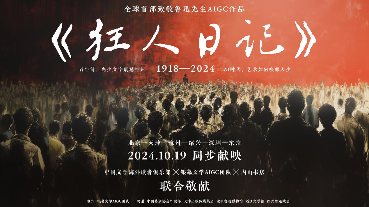 活動期間,由浙江青年作家陳錦丞與銀幕文學(xué)AIGC團隊共同創(chuàng)作的多語種版《狂人日記》AIGC版動畫短片在中國文學(xué)海外讀者俱樂部新媒體矩陣發(fā)布,并在北京魯迅博物館、天津內(nèi)山書店、浙江文學(xué)館、深圳內(nèi)山書店等地播映。該動畫以高科技制作手段,結(jié)合木刻、黑白電影、文字等視覺元素,以沖擊力極強的影像和聲音語言,帶領(lǐng)讀者進入《狂人日記》中“我”的第一視角,展示了魯迅先生對文明、人性、社會的深刻思考和厚重情感,極富感染力。動畫播出后,短時間播放量便達到10萬次,引起了中外讀者的熱烈討論。