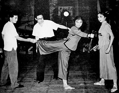 《紅色娘子軍》的編導之一李承祥(左二)、王希賢(左一)為第一代“瓊花”的飾演者白淑湘(右二)以及趙汝蘅(右一)排練。圖片由中央芭蕾舞團供圖