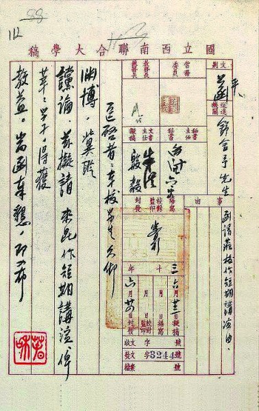 邀請老舍到西南聯(lián)大講演的函