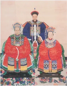 據(jù)《越城周氏支譜》記載,孫月仙“生道光癸巳九月十九日子時,卒同治甲子九月初五日亥時”[23],即生于1833年10月31日,卒于1864年10月5日。她于1858年生周德(周氏兄弟的大姑母),1860年生周伯宜(周氏兄弟的父親)[24]655;其間還生育過一個兒子,但夭折了[25]。她去世時僅有31歲,與幼年魏連殳眼中“年青,好看”的形象相符合。孫月仙畫像現(xiàn)藏紹興魯迅紀(jì)念館,這是一張周福清與孫氏、蔣氏的彩繪神像,縱167.8厘米,橫113.5厘米,20世紀(jì)50年代由周作人捐贈(見圖1)。由于有兩名子女長大成人,孫月仙在周氏家族中一直被紀(jì)念,周作人稱其為“先祖妣孫太君”,在日記中記載了周家在其生辰、忌日對她的祭祀。