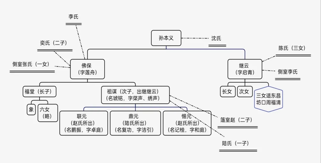從《紹興孫氏宗譜》,可以看到孫氏家族相關(guān)人物關(guān)系(見圖2):