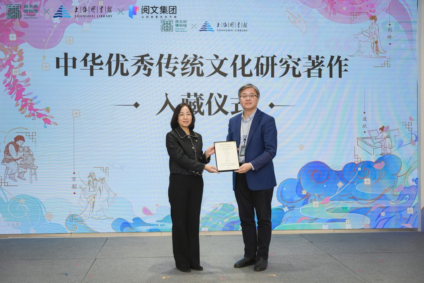 頒獎儀式上同時宣布,“閱見非遺”第三屆征文大賽正式啟動。24部“閱見非遺”征文大賽優(yōu)秀作品以及恭王府博物館關(guān)于中華優(yōu)秀傳統(tǒng)文化研究著作及相關(guān)文獻(xiàn)資料入藏上海圖書館。