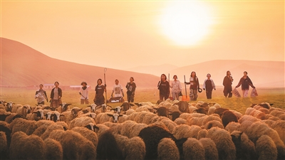 落日時(shí)分,《燃燒的月亮》女嘉賓們集體趕羊回羊圈。