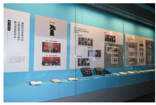 第三展區(qū)聚焦新時代以來黨中央對民族工作的高度重視和民族文學事業(yè)的繁榮。新時代新征程,民族文學人才輩出,優(yōu)秀作品大量涌現(xiàn)。