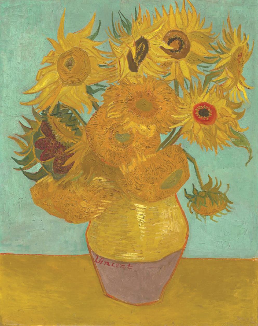 今天,梵高筆下如陽光般閃耀的向日葵已成為大眾記憶里最為熟悉的藝術(shù)圖像之一,但在它誕生的時刻,它代表著一種極為大膽的視覺革命。梵高試圖追求的是“一種或許不屬于印象派畫家的簡單技術(shù)”,從而將他從細碎的點畫風(fēng)格中解放出來,真正形成自己獨特的藝術(shù)語言。荷蘭梵高美術(shù)館的策展人尼科·巴克與英國國家美術(shù)館的策展人克里斯托弗·里奧佩爾形容國家美術(shù)館所藏的《向日葵》“強化了視覺體驗的真實性”,這種強烈的、直接的真實感卻帶來了一種近乎幻覺的沖擊。它體現(xiàn)了梵高對巴黎先鋒派和其他非西方的藝術(shù)形式(如日本版畫)的汲取,同時又展現(xiàn)了他對各類筆觸的綜合運用和對物象的圖式化處理。