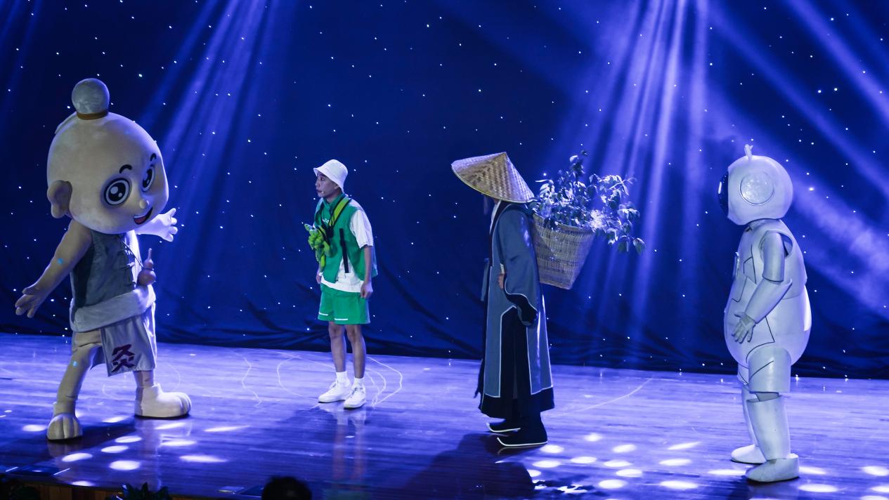 作為特色環(huán)節(jié),啟動(dòng)儀式上還展演了跨界融合舞臺(tái)劇《藥圣》的精編版,講述了灸童帶著小男孩豆豆和機(jī)器人叨叨與穿越而來(lái)的明代著名醫(yī)藥學(xué)家李時(shí)珍進(jìn)行互動(dòng),了解《本草綱目》的編寫(xiě)歷程和偉大貢獻(xiàn)的故事。這是國(guó)內(nèi)首部利用裸眼3D等數(shù)字技術(shù)將動(dòng)漫元素緊密結(jié)合的中醫(yī)藥主題舞臺(tái)劇,融合了歌舞、武術(shù)等表演元素,打造出身心共融的全景式、沉浸式觀劇體驗(yàn)。