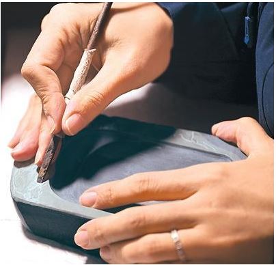 硯雕大師在河北省易縣雕刻國家級非物質(zhì)文化遺產(chǎn)易水硯。