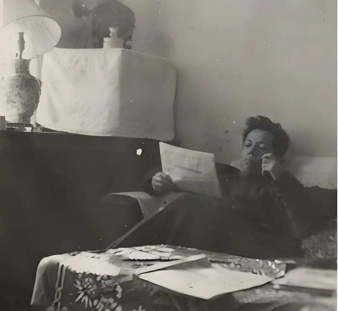 我在現(xiàn)代文學(xué)館調(diào)閱王先生的老照片時(shí),會(huì)特別留意鏡頭中那些不經(jīng)意的日常生活瞬間。有兩張讀報(bào)的照片特別引起我的注意,從周遭背景看肯定拍攝于不同時(shí)期,一張?jiān)谥嘘P(guān)園寓所,一張?jiān)阽R春園寓所,但王先生讀報(bào)的姿態(tài)幾乎沒(méi)有任何變化:把身體完全陷于沙發(fā)中,頭枕在沙發(fā)背上微微上仰,一手持煙斗,一手拿報(bào)紙,神情嚴(yán)肅,目光牢牢地釘在報(bào)紙上,似乎周圍一切都不存在。不變的身體姿態(tài)說(shuō)明讀報(bào)已經(jīng)成為王瑤先生日常生活中不可動(dòng)搖的固定儀式。