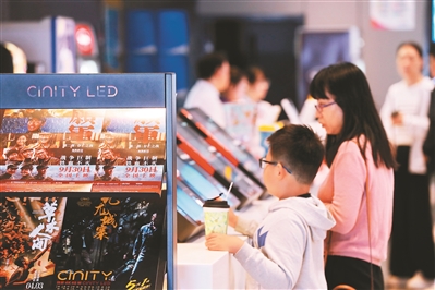 2024年10月7日,市民在浙江省嘉興市一家影城取票準(zhǔn)備觀影。2024年國慶檔新片票房(含點映及預(yù)售)突破20億。