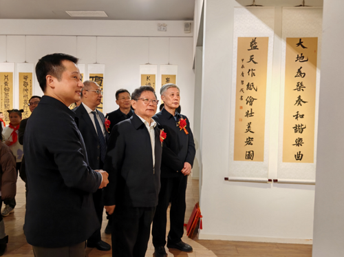 12月13日,由民進湖南省委員會、民進長沙市委員會、長沙縣文化旅游廣電體育局主辦,民進中央開明畫院支持的“遵道而行 同心向黨”——慶祝中華人民共和國成立75周年詹習(xí)成師生書法展在北京民進中央開明美術(shù)館舉辦。民進中央副主席高友東出席并宣布書法展開幕,湖南省政協(xié)副主席、民進湖南省委會主委潘碧靈,長沙市人大常委會副主任、民進長沙市委會主委李平分別致辭。