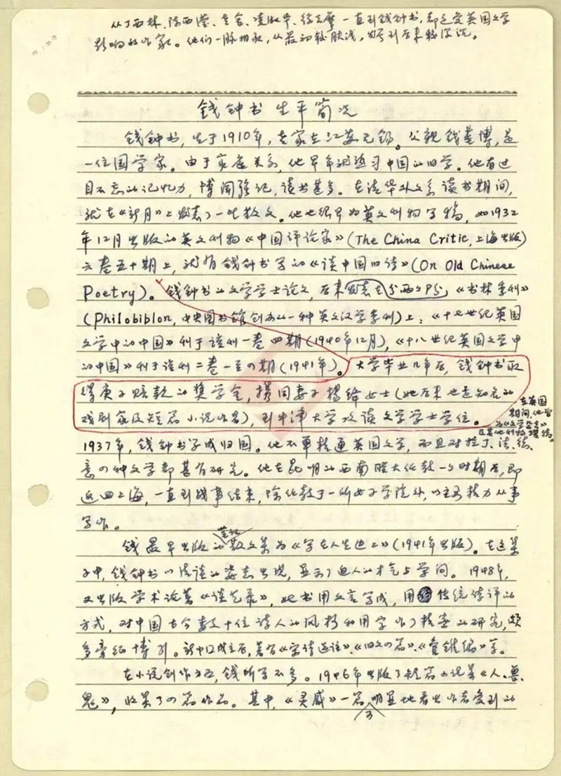 關(guān)于錢氏生平,還可參考:《明報月刊》1976年8月號上麥炳坤的《錢鐘書的生平和著述》,《中國時報》《人間》副刊1979年6月16—17日上夏志清的《重會錢鐘書紀(jì)實》。