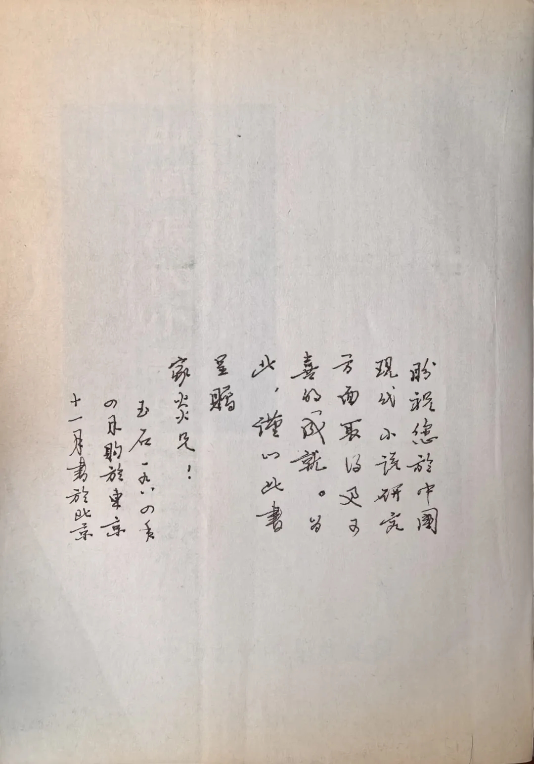 盼祝您于中國現(xiàn)代小說研究方面取得更可喜的成就。