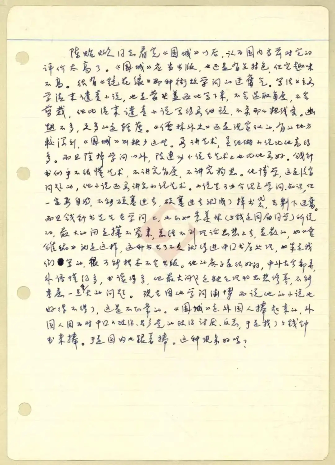 陳艷:關(guān)于錢鐘書——嚴(yán)家炎的未刊手稿