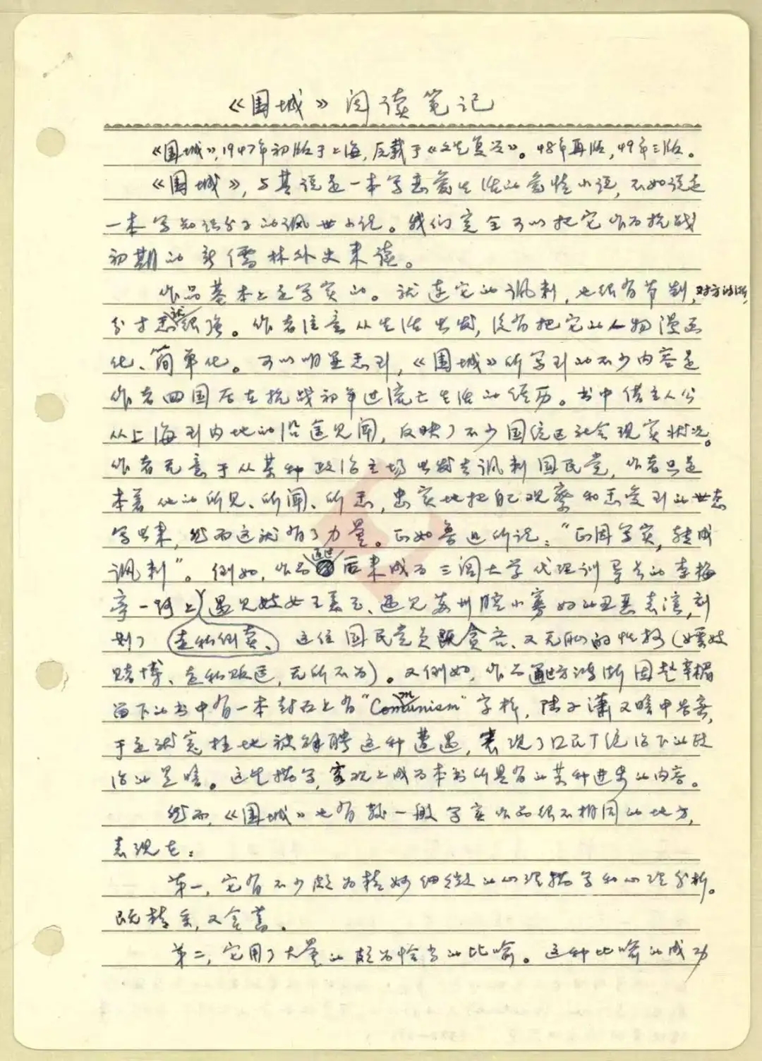 關(guān)于《圍城》書中精彩處或有意義處,我已在行邊用小圓點做了記號(·)。