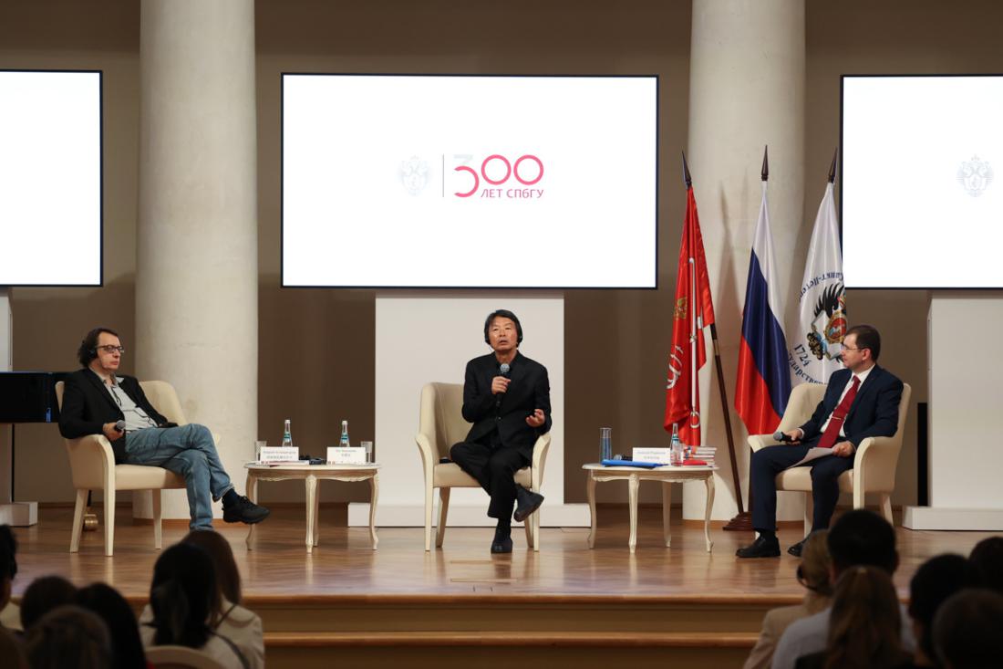 在俄羅斯訪問期間,劉震云來到具有300多年歷史的圣彼得堡國立大學(xué),接受了由校長克羅帕切夫授予的圣彼得堡國立大學(xué)名譽(yù)博士學(xué)位,并參加了由圣彼得堡大學(xué)和俄羅斯中國文學(xué)讀者俱樂部共同舉辦的“俄羅斯與中國:文學(xué)創(chuàng)造中未來的形象”文學(xué)研討會。研討會由羅季奧諾夫主持,由劉震云和俄羅斯作家阿斯特瓦察圖羅夫?qū)φ劊耸ケ说帽ぶ袊膶W(xué)讀者300余人參加。