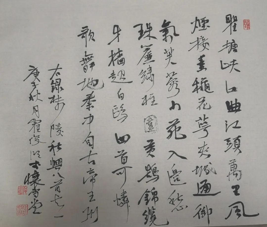 我寫字的第一個老師是我的父親。他初小畢業(yè)考初中的時候被人頂替了,此后在家務(wù)農(nóng),但是因為格外聰明和為人真誠守信而當(dāng)過大隊保管員、會計、隊長、獸醫(yī),甚至還有機會去當(dāng)兵,去文化館以及公檢法培訓(xùn)班學(xué)習(xí),但都因為種種原因錯過了好機會。在最初寫字的時候父親就提醒我要橫平豎直,要方正不要歪斜,要工整不要潦草,所以他是我寫字的啟蒙老師。從1996年工作開始我偶爾會練練字,但因為教學(xué)的繁重以及考研就耽誤了。真正所謂的寫字是在2000年讀研究生,我那時寒暑假回到老家?guī)缀跻挥袝r間就臨摹王羲之、蘇軾、米芾、黃庭堅、趙孟頫、祝允明以及唐人寫經(jīng)、敦煌寫經(jīng)的行書(行草),后來逐漸喜歡上了《西峽頌》以及林散之、于右任等。我偶爾用左手寫字是為了擺脫右手寫字的用筆慣性,為了找到那種新鮮的別樣的運筆感覺,但是用左手寫字顯然用筆會單一,不建議大家模仿。