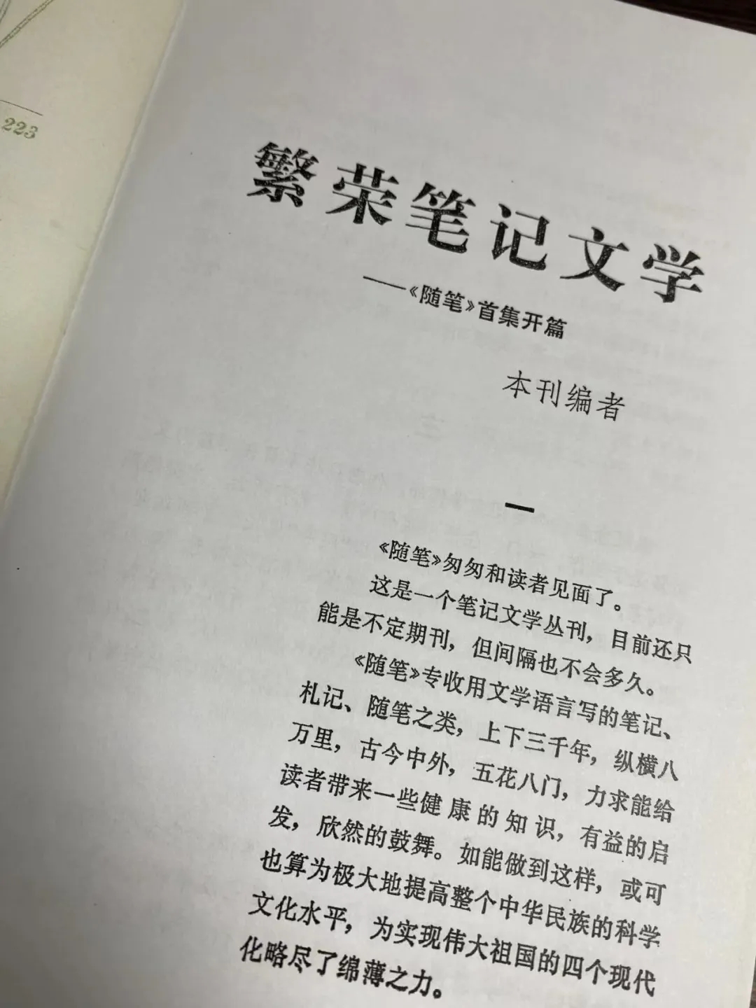 蘇晨為這本雜志起名《隨筆》,他說:“隨筆、筆記文學(xué)是散文的大宗?!S筆’這兩個字是我決定的。叫《隨筆》是因為這個范圍大,叫‘筆記’就窄了?!辈贿^他為《隨筆》撰寫的開篇詞,仍把它稱為筆記文學(xué)叢刊。“專收用文學(xué)語言寫的筆記、札記、隨筆之類,上下三千年,縱橫八萬里,古今中外,五花八門,力求能給讀者帶來一些健康的知識,有益的啟發(fā),欣然的鼓舞?!?/p>
