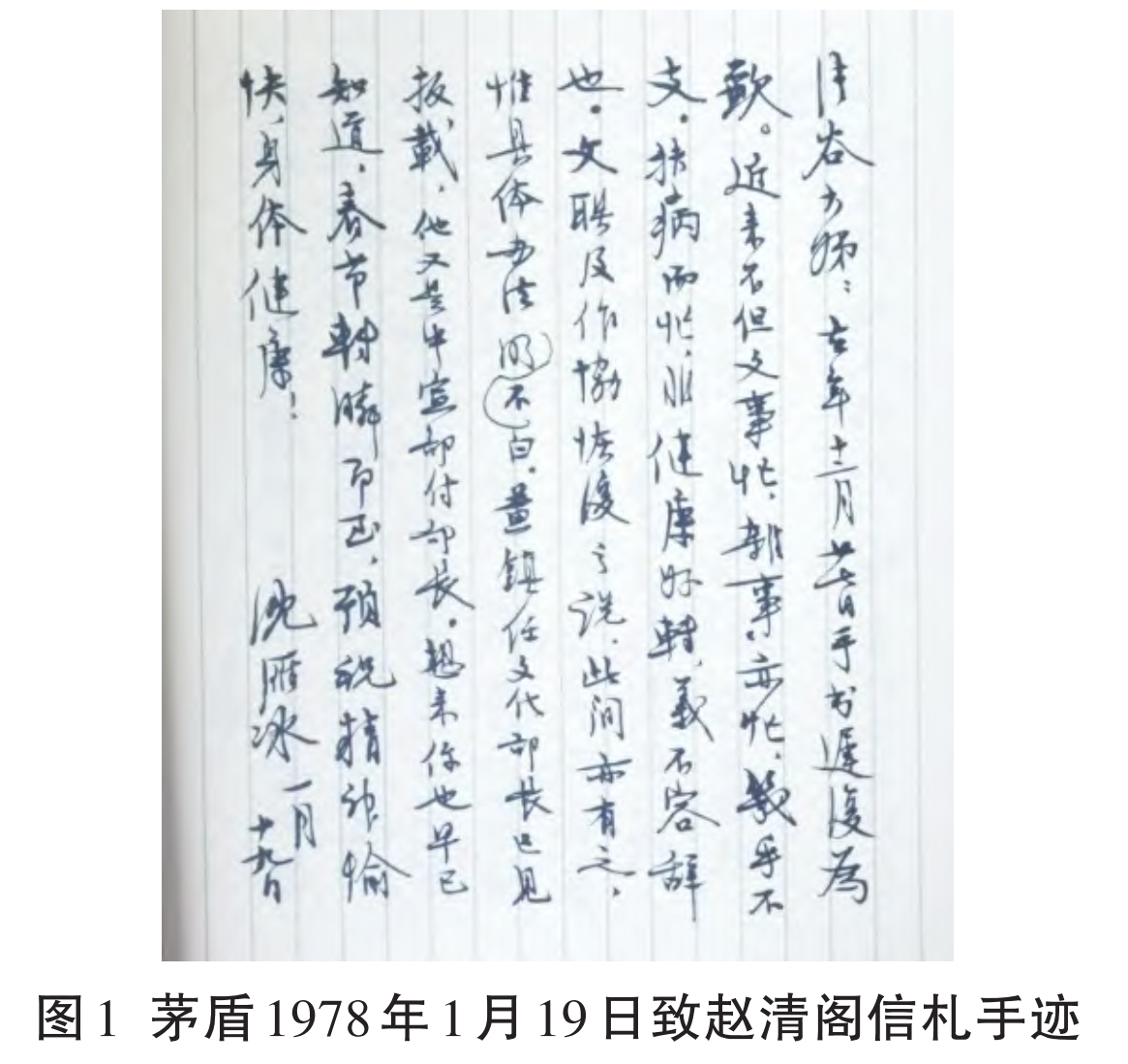 關(guān)鍵詞:茅盾;致趙清閣信札;1978年1月19日;1977年9月7日;考釋