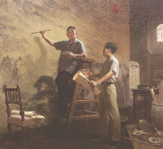 如果以進(jìn)京作品展作為此屆全國(guó)美展的藝術(shù)水準(zhǔn)刻度,還是頗令人欣慰和驚喜的。在中國(guó)美術(shù)館中央圓廳的正中,觀眾可以看到表現(xiàn)富有新時(shí)代農(nóng)民精神特質(zhì)的作品《暖》和《金色土地》。李傳真與吳筱蘅合作的工筆重彩《暖》刻畫細(xì)致,展現(xiàn)了當(dāng)代工筆畫多材料介入形成的深入塑造能力;沈曉明的寫意人物《金色土地》,試圖在造型的生動(dòng)性與筆墨的寫意性之間構(gòu)成的一種表現(xiàn)語(yǔ)言的平衡。從前者畫面中農(nóng)民工在城里歡度中秋節(jié)并與遠(yuǎn)方村里孩子們視頻聯(lián)線的場(chǎng)景所反映的當(dāng)代農(nóng)民工生活質(zhì)量的提升,到后者表現(xiàn)收獲季節(jié)農(nóng)民工再度返鄉(xiāng)收割的景象所營(yíng)造的金色土地意象,兩幅畫作包含了豐富而深刻的圖像母題的社會(huì)學(xué)內(nèi)涵。近年來,大型主題性創(chuàng)作項(xiàng)目也深度影響了當(dāng)代美術(shù)的創(chuàng)作理念,李前的油畫《工人是“天”》所建構(gòu)的李大釗在北京長(zhǎng)辛店傳播革命思想的歷史圖景,展現(xiàn)了歷史畫如何發(fā)掘素材還原歷史真實(shí)的藝術(shù)創(chuàng)造性;而孫妍的雕塑《同唱》以浪漫主義情懷塑造出一群女文工團(tuán)團(tuán)員,讓人們感受到革命戰(zhàn)爭(zhēng)年代文藝工作者滿懷青春斗志。不論是歷史人物還是無(wú)名戰(zhàn)士,這些歷史題材創(chuàng)作通過人物形象刻畫所體現(xiàn)的主題立意無(wú)不具有激發(fā)人們繼續(xù)奮斗的藝術(shù)感染力。歷史畫從來都不完全是對(duì)歷史片段的客觀復(fù)制,而總是以當(dāng)代視角賦予其鮮活的現(xiàn)實(shí)形態(tài)。因此,視覺新質(zhì)并非只是視覺感觀的新銳,而是對(duì)視覺背后深掩的思想礦藏的發(fā)掘。