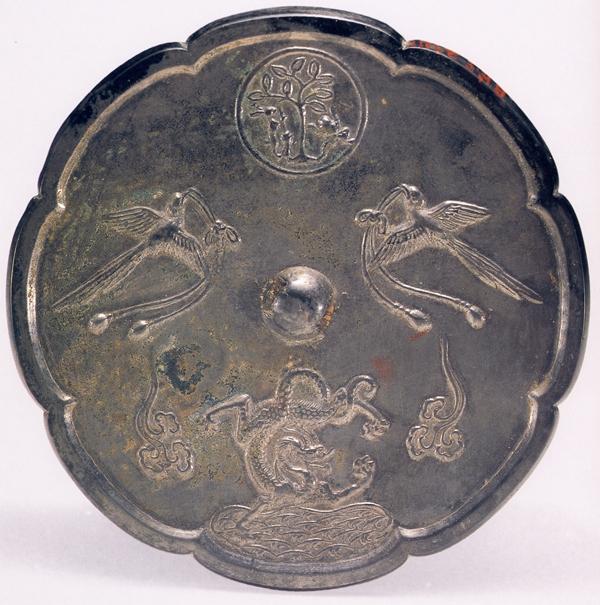 四川平武城隍廟出土的唐代盤龍雙鵲月宮鏡(《中國青銅器全集》16卷《銅鏡》,圖148)。作者供圖