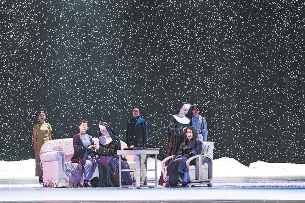 雖然李六乙的加減法未必都能為觀眾順暢接受,尤其最后一場重頭戲,在如此密集的突轉(zhuǎn)和致命的緊張感中,調(diào)性的突然變化極易解構(gòu)掉劇作的悲劇性。但他畢竟打開了解讀《雷雨》的新視角。尾聲部分,轟鳴的馬勒第二交響曲中,漫天大雪埋葬了災(zāi)難和罪孽,面對那些既有罪又無辜的人,建立“天邊外”一個潔凈新世界的憧憬,當(dāng)是李六乙與曹禺最貼心的對話。