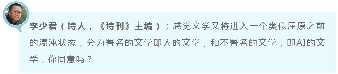 提問者的回應:我覺得你說的AI參與之后的未來文學具有普世文學的維度,有一定道理,因為AI創(chuàng)作是建立在人類已有文明基礎上的,是一種綜合、提煉與總結(jié)。但AI寫作有一個問題,它是面對過去的統(tǒng)合,并不能開拓新的未來,因為它不可能親歷和體驗,因而無法產(chǎn)生新的情感及感受感覺并將之轉(zhuǎn)化為新的文學。文學很重要的一個功能就是情境還原,強調(diào)創(chuàng)作的歷史現(xiàn)場感。AI現(xiàn)在也可以寫詩了,但AI沒有情感,也永遠無法講出詩歌后面的故事,講出當時的場景和現(xiàn)場的感受和心情,無法情景再現(xiàn),比如生存的慘痛經(jīng)歷,比如山水間的新鮮活潑感受,比如戀愛時的激動不安,無法帶領人身臨其境,重新體驗和感受作者當時的場景和心情。人的文學,一定是可以講出創(chuàng)作背后的故事的,因為人有親歷性的現(xiàn)場感,而AI創(chuàng)作,只是對已有文學的重新組合。