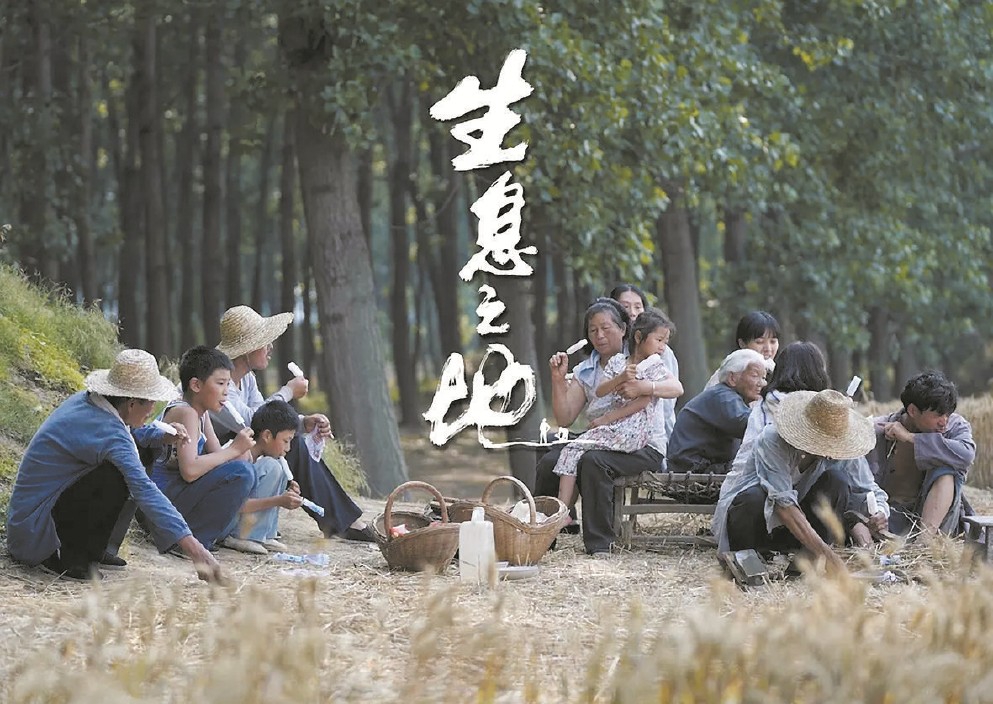 柏林首映前,《生息之地》發(fā)布了國際版海報。那是兩幅不同季節(jié)的鄉(xiāng)村生活圖景:春天,一身素衣的小姨在麥田里為少年徐闖戴上孝帽,畫面靜謐又悠遠(yuǎn);仲夏,男女老少于田間勞作的間歇聚在一起吃冰棍,質(zhì)樸而溫馨。時間在寒來暑往里流動,少年長大,鄉(xiāng)村、土地、人的多重關(guān)系悄然改變著?;裘驼f:“這是一部獻(xiàn)給我童年的影片,它不僅是對故鄉(xiāng)的溫情回望,更是對一代人精神家園的溫柔觸摸?!?/p>
