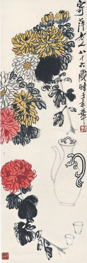 四月廿四日,幾位朋友聚談至倦,有朋友勸酒,白石點(diǎn)到即止,絕不多飲,在座的摯友李筠庵出面解釋,說(shuō)白石是“生平自醒,非他人至死沉醉者”。白石把朋友的良言錄入日記,當(dāng)然體現(xiàn)的是他的尊重與自覺。齊白石畫過(guò)數(shù)不清的《醉酒圖》《盜甕圖》《菊酒圖》,但他是不是沒有過(guò)一次喝得爛醉呢?他自己的日記不少,別人回憶他的文章更多,可以說(shuō)沒有一次是記白石醉酒的。