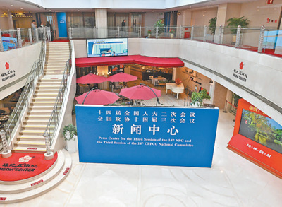 全國兩會新聞中心。人民網(wǎng)記者 翁奇羽攝