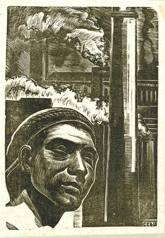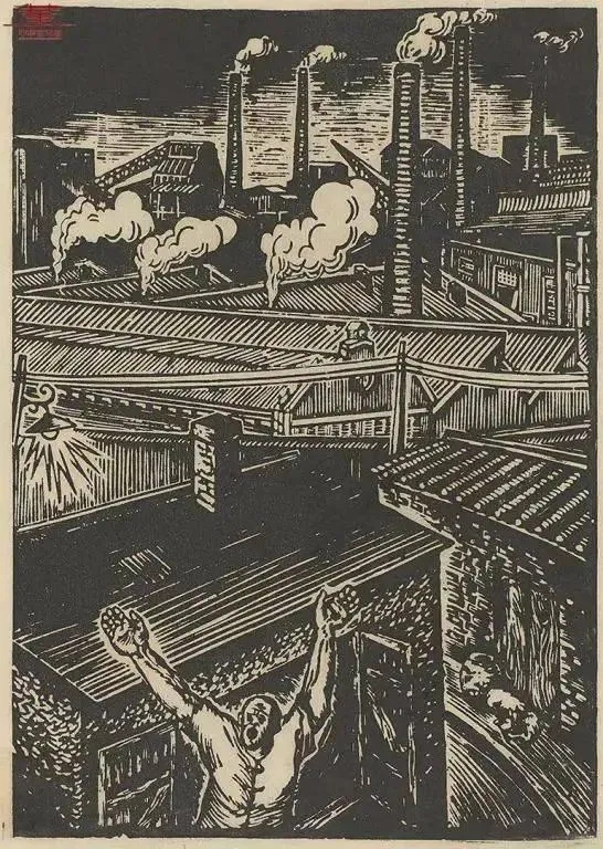 機(jī)器化生產(chǎn)過(guò)程在根本上重新塑造了勞動(dòng)者的身體特質(zhì),他們?cè)趯⒆陨硗度霗C(jī)器運(yùn)轉(zhuǎn)的過(guò)程中(“鐵的隧道中流著我們的血,/皮帶的機(jī)轉(zhuǎn)中潤(rùn)著我們的汗水”[53]),也被機(jī)器所塑造。后者不僅磨練了他們的意志,更打造了他們的身體:“機(jī)輪加速的旋轉(zhuǎn),工人都在磨練自己的臂膀,使它很快的堅(jiān)實(shí)起來(lái),要和鐵一樣的成為鐵臂。鐵臂!”[54]正是這樣的組織和鍛煉,為無(wú)產(chǎn)階級(jí)賦予了強(qiáng)大的力量感,他們不僅在自我感知中構(gòu)造出一種機(jī)器化的自我形象,同時(shí)也將依據(jù)這種自我形象,在斗爭(zhēng)中重新改造都市的整體面貌。