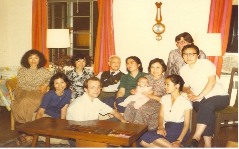 張立青、何謙、葉嘉瑩、艾朗諾、洪業(yè)、齊文穎、李卉(抱著艾瑞思)、周杉、Beatrice Spade、朱紅,麻省劍橋艾家,1980年。
