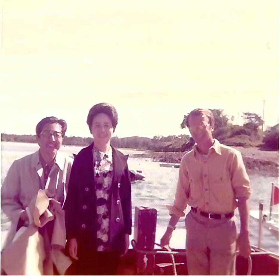 趙鐘蓀、葉嘉瑩和艾朗諾在緬因州船上,1973年。