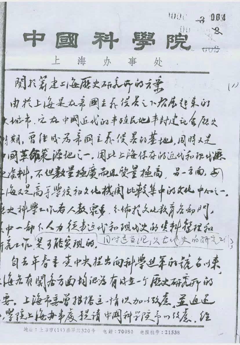 籌建歷史研究所的文件(來源:上海社會科學(xué)院歷史研究所)