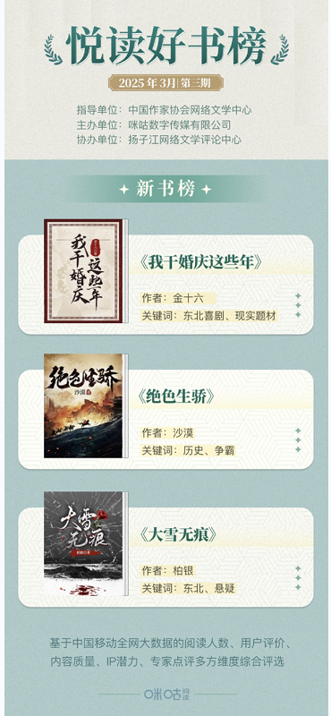 咪咕閱讀第三期“悅讀好書榜”發(fā)布,網(wǎng)文IP改編劇占口碑榜超70%