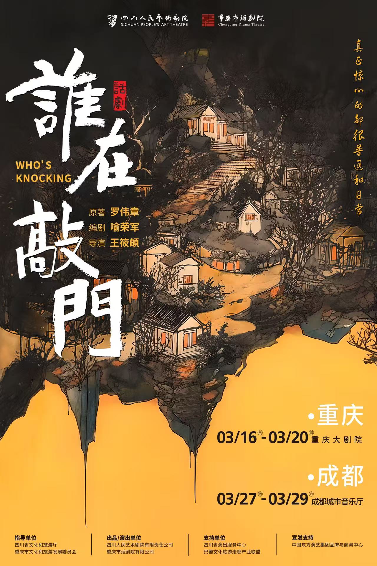 話劇《誰在敲門》由四川省演出服務(wù)中心、巴蜀文化旅游走廊產(chǎn)業(yè)聯(lián)盟支持,中國東方演藝集團(tuán)品牌與商務(wù)中心宣發(fā)支持。據(jù)悉,該劇重慶站演出將持續(xù)至3月20日,此后還將于3月27日至29日登陸成都城市音樂廳。