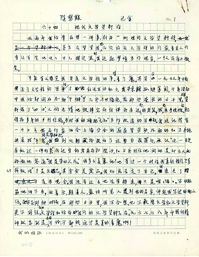 巴金《隨想錄》手稿,文中提及“創(chuàng)辦一所現(xiàn)代文學(xué)資料館”的心愿?,F(xiàn)藏于中國現(xiàn)代文學(xué)館。中國現(xiàn)代文學(xué)館提供