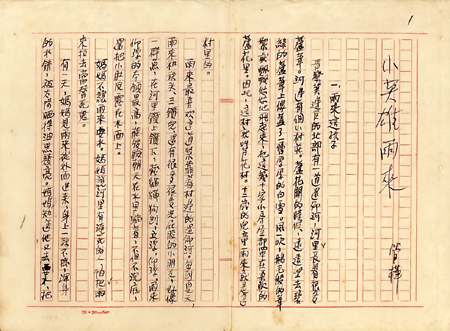 歷經(jīng)半個(gè)世紀(jì),《小英雄雨來》手稿整體保存很好,作者管樺用藍(lán)黑墨水在“25×20=500”的紅色豎排格紙上創(chuàng)作,修改處并不多,共57頁、21章。從最后一頁可知,該稿并不完整。家屬介紹,這部手稿是管樺在新中國成立后創(chuàng)作的,但這是第幾稿他們也并不很清楚。