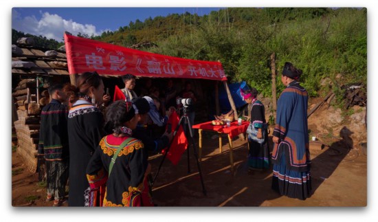 次日,劇組就舉行了一個開機儀式。在詢問主創(chuàng)這個日子是怎么來的時候,制片人沙馬伍颯說,電影制作過程的重要環(huán)節(jié),比如開機儀式、走紅毯、發(fā)布等重要的日子,都要找德高望重的畢摩去算日子,從其那里算出一個良辰吉日,從而確定一個特定的日子進行開機儀式——《翻山》劇組的開機儀式時間定在“豬日”(彝族十月太陽歷)下午的六點六分。