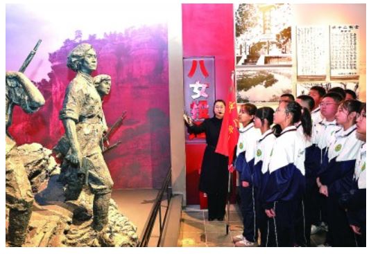 4月3日,遼寧省本溪市本溪滿(mǎn)族自治縣抗聯(lián)中學(xué)的學(xué)生在東北抗聯(lián)史實(shí)陳列館參觀(guān)。新華社記者 李鋼攝